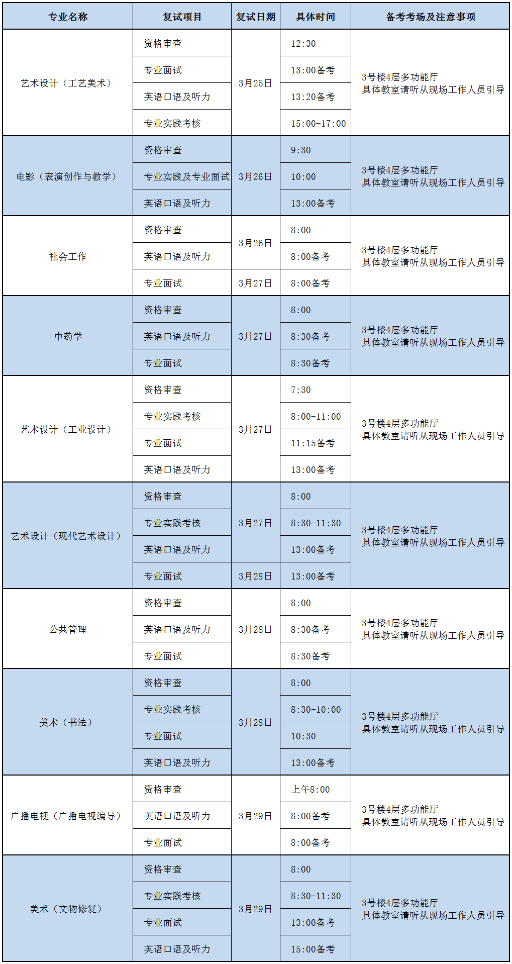(3)如安排有調整,以考試當天考務辦通知為準。