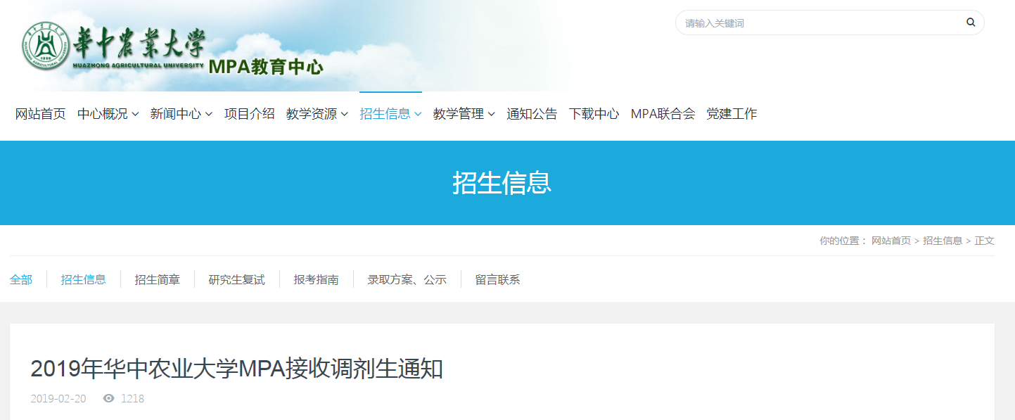 MPA接受調劑的院校 | 華中農業大學2019年接收MPA調劑的通知”的全部內容,更多關于MPA院校調劑信息,盡在“