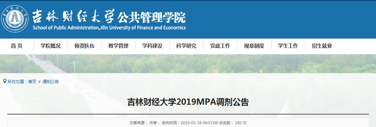 MPA接受調(diào)劑的院校 | 吉林財經(jīng)大學(xué)2019年接收MPA調(diào)劑的通知”的全部內(nèi)容,更多關(guān)于MPA院校調(diào)劑信息,盡在“