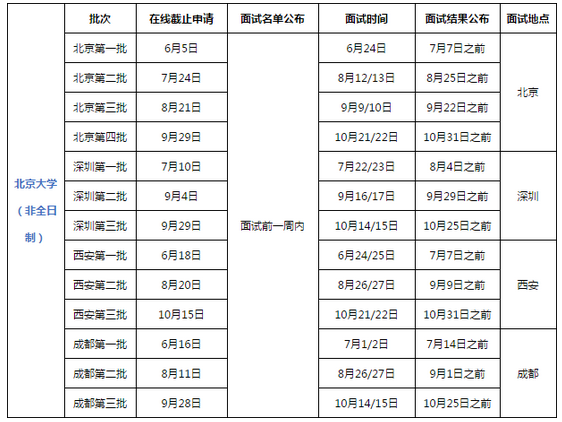 北大光華管理學院在職MBA提前面試時間批次安排如下: