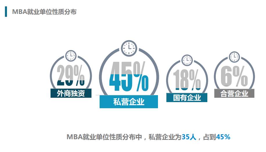 從北大光華《2019年全日制MBA畢業生情況》來看,僅9%的學生回原單位工作,可見尋求更好的職業發展是很多職場人士讀MBA的主要目的之一。