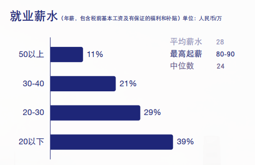 很多同學最關心的薪酬方面,37%的畢業生薪酬在40萬到60萬之間,并且就業地域主要在以北京為主的一線城市。
