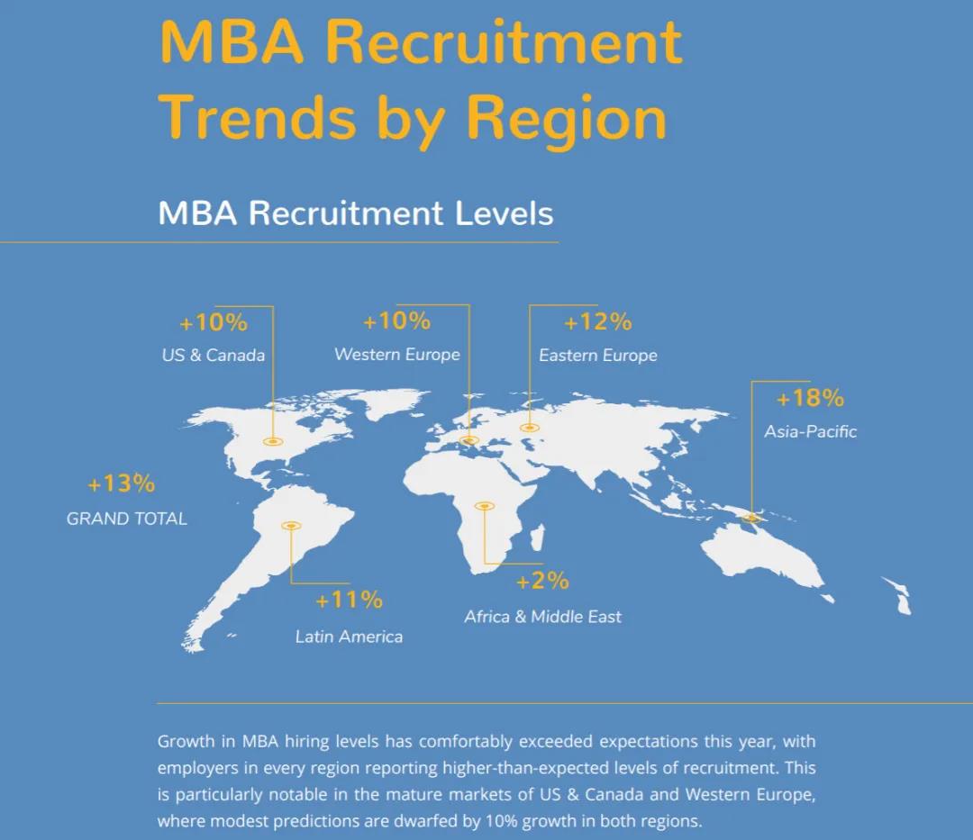 上述各院校就業報告,和《2018 QS TOP MBA就業與薪酬趨勢報告》相互印證,根據該報告顯示,2017年,全球范圍內MBA畢業生的薪酬水平處于上升趨勢,并且大部分的雇主都偏愛有3-5年或1-3年工作經驗的MBA畢業生。而且,從就業行業來看,金融和咨詢仍是MBA就業市場的主力,在今天看來依然如此。