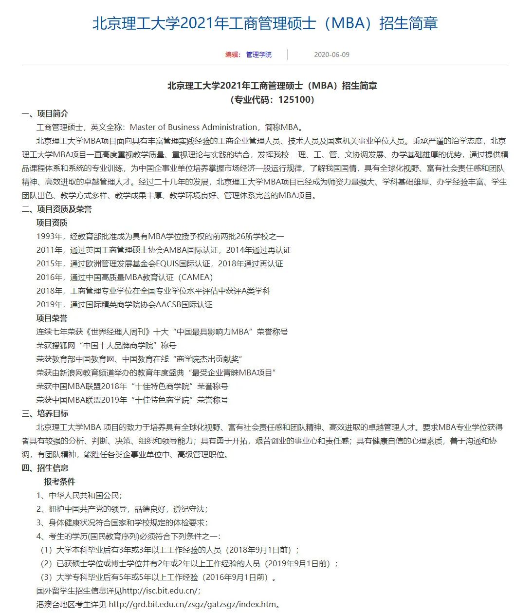 北京理工大學2020年工商管理碩士復試、錄取實施辦法