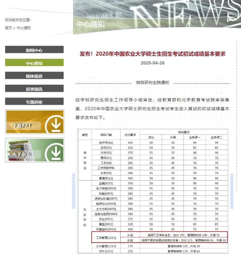 2020年中國農業大學碩士生招生考試初試成績基本要求: