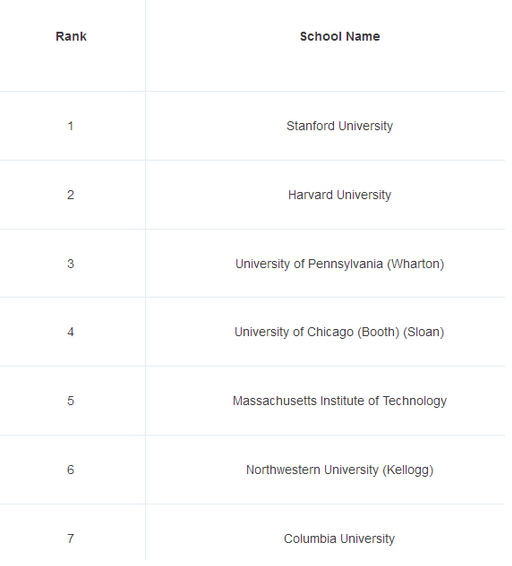 1 USNews商科排名為商學院排名,但是美國商學院的基礎教育是MBA(這也是為啥你發現一些商學院只開設MBA和EMBA課程,如Dartmouth-Tuck),因此,查看US商排,就相當于是MBA排名了。