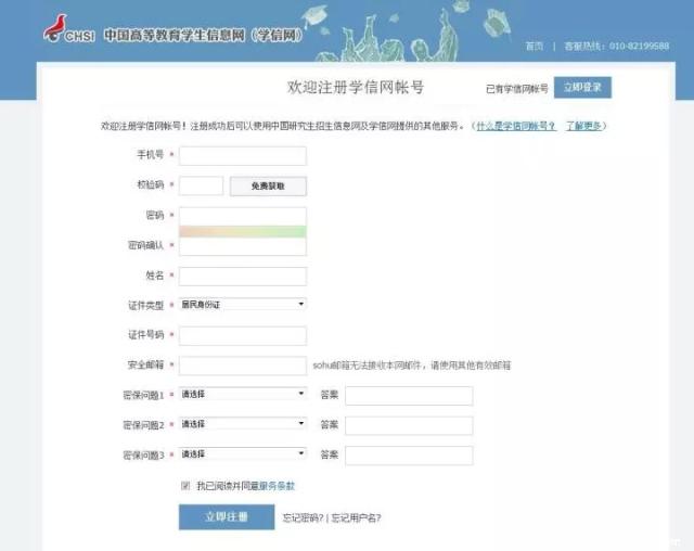 注:已有學信網(wǎng)賬號的考生可直接登陸,沒有學信網(wǎng)賬號的同學請先注冊學信網(wǎng)賬號。