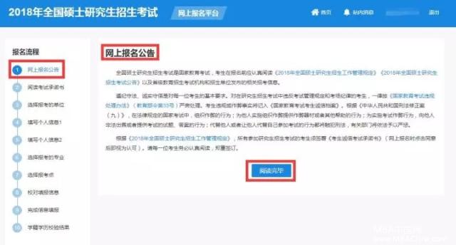 仔細閱讀教育部公告后點擊“閱讀完畢”。