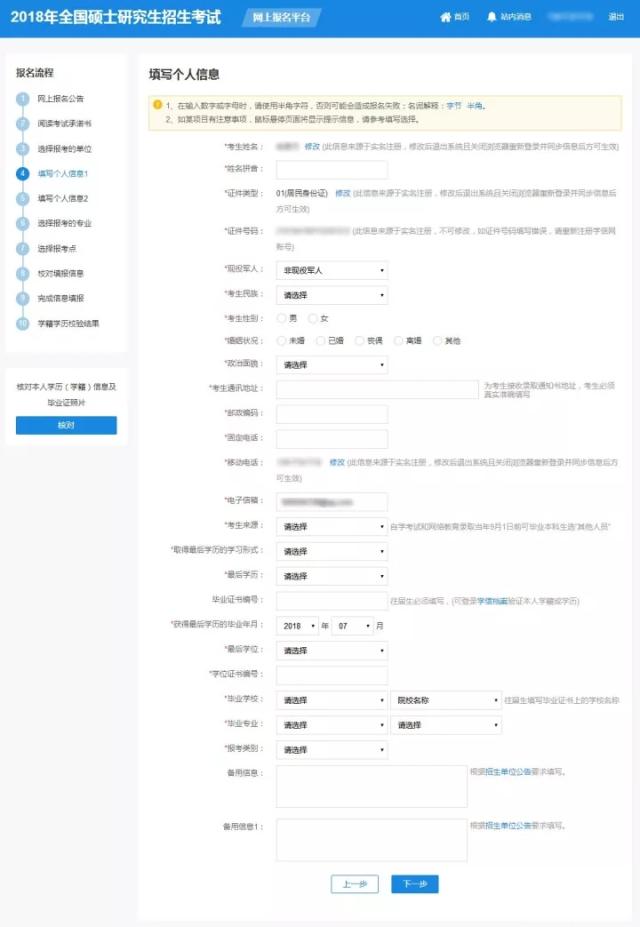 報名期間研招網(wǎng)將對考生學歷(學籍)信息進行網(wǎng)上校驗,并在考生提交報名信息三天內(nèi)反饋校驗結(jié)果。考生可隨時上網(wǎng)查看學歷(學籍)校驗結(jié)果。考生也可在報名前或報名期間自行登錄“中國高等教育學生信息網(wǎng)(網(wǎng)址:http://www.chsi.com.cn)查詢本人學歷(學籍)信息。