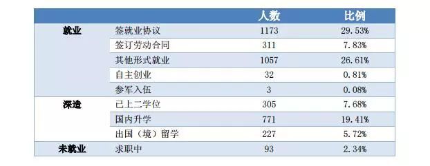 本科畢業生就業落實率97.99%,就業簽約率71.72%,深造率58.03%;