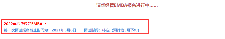 導讀:一年之計在于春!近日不少高等學府也早早公布了2022級EMBA提前批面試時間安排,今天小編整理了近期可以申請的院校批次,供有意向的同學選擇。一下就是“2021級EMBA提前面試:清華經管學院2022年EMBA第一批面試報名截止時間”的內容,快來了解一下!