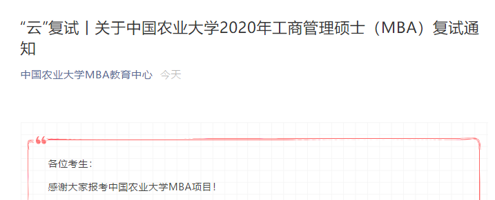 以上就是“2020MBA復試公告:中國農業大學MBA復試工作安排通知”的全部內容,更多考研復試信息,請多多關注MBA備考網!祝您考研成功!