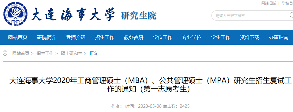 大連海事大學2020年工商管理碩士(MBA)、公共管理碩士(MPA)研究生招生復試工作的通知(第一志愿考生)