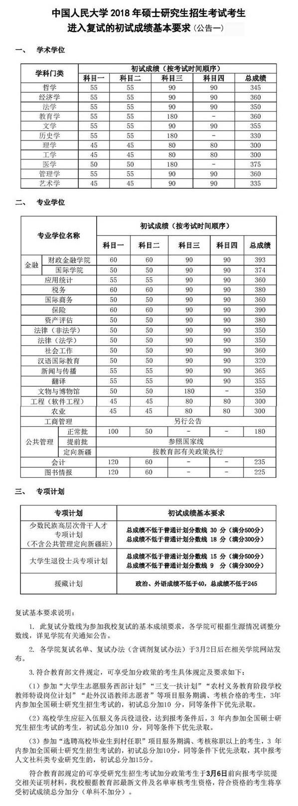中國人民大學(xué)2018年碩士研究生復(fù)試分?jǐn)?shù)線現(xiàn)已公布,具體復(fù)試分?jǐn)?shù)線情況如下: