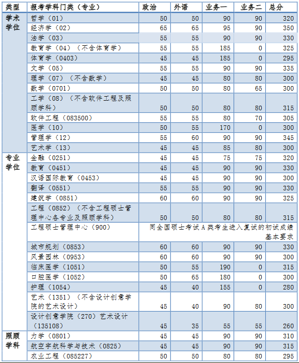 1.政治理論、外國語滿分為100分,業務課滿分為150分(管理類綜合能力滿分為200分,教育學、醫學門類的業務課滿分為300分)。