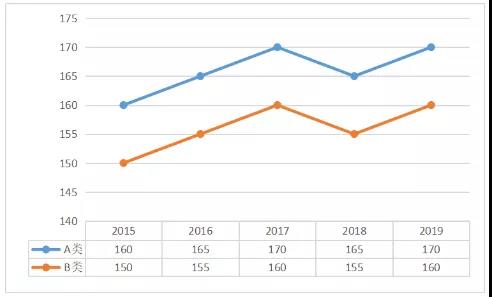 2015-2019年總分國家線走勢圖: