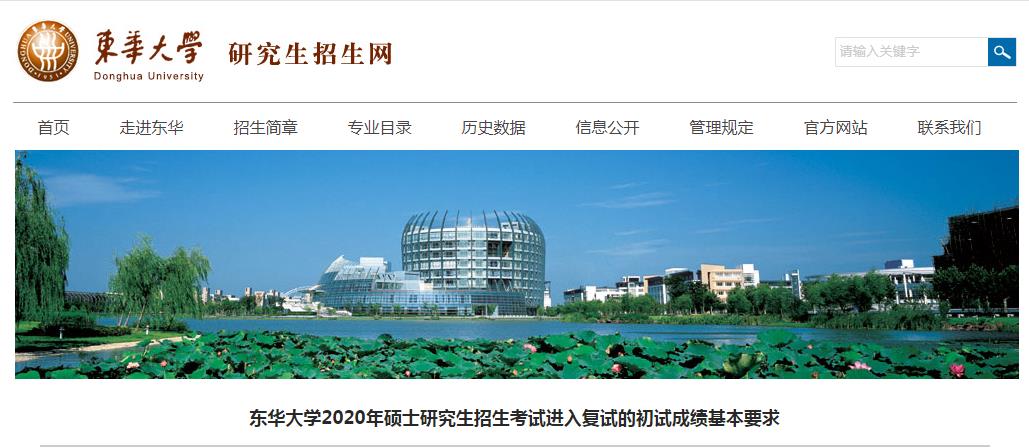 繼2020考研國家線公布后,34所自主劃線院校和各大院校也陸續公布2020年復試分數線。東華大學已經公布2020年碩士研究生入學考試復試基本分數線,如下所示:
