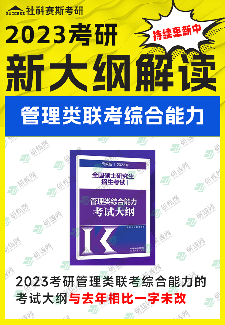 以上就是社科賽斯備考網小編整理的“2023考研大綱(MBA/MPA/MEM/MTA):2023管理類綜合考試大綱變動解析”的相關內容,大家一定要緊跟考研大綱變化,調整復習方向和學習內容,祝大家成功上岸!