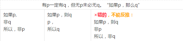 無p一定無q,但有p未必有q=只有p,才q=除非p,否則不q。