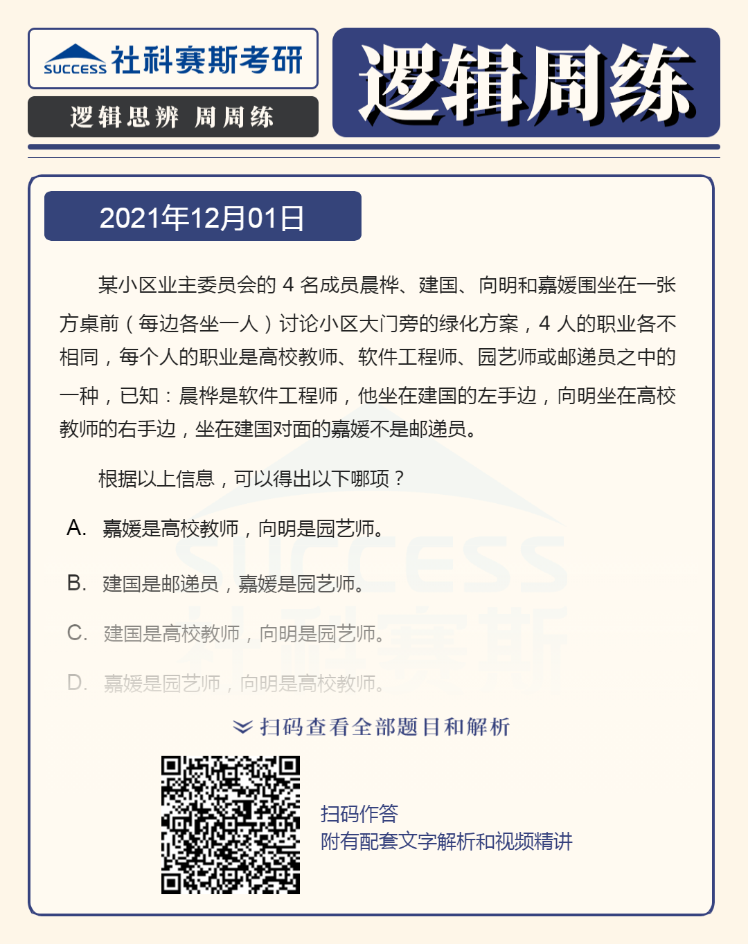以上就是“2022MBA邏輯:2022MBA聯考邏輯習題及答案解析(12月1日)”的全部內容,更多邏輯精選習題,請持續關注社科賽斯MBA備考網!