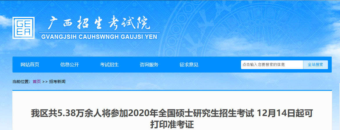 2020考研初試已經(jīng)結(jié)束了,相信有許多考生都非常關(guān)注2020考研初試成績查詢時間,小編將為考生整理關(guān)于“廣西省2020考研初試成績查詢時間”相關(guān)新聞,希望考生多多關(guān)注。