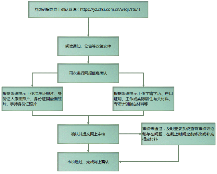 考生在確認系統提交材料后,將于11月9日17:00前收到審核結果,請及時關注確認系統中對審核結果的反饋提示。提示“審核通過”的考生,請認真準備參加考試;凡是提示“審核不通過”的考生請在規定時間內(11月10日11:00之前)修改、補充材料,逾期不補充或者補充仍然不符合要求的,無法完成網上確認,后果由考生本人承擔。