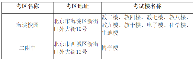 我校設(shè)置北京師范大學(xué)海淀校園(以下簡稱海淀校園)和北京師范大學(xué)第二附屬中學(xué)(以下簡稱二附中)兩個考區(qū),共10個考試樓,詳情如下(各考試樓位置示意圖見附件1、2):