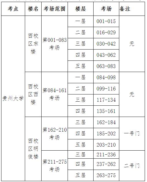 考生僅可從貴州大學西校區正門(甲秀南路)進入,其他校門均處于封閉狀態。