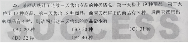 1.某便利店第一天售出50種商品,第二天45種,第三天售出60種,前兩天有25種相同,后兩天售出商品有30種相同.這三天售出商品至少有()種.