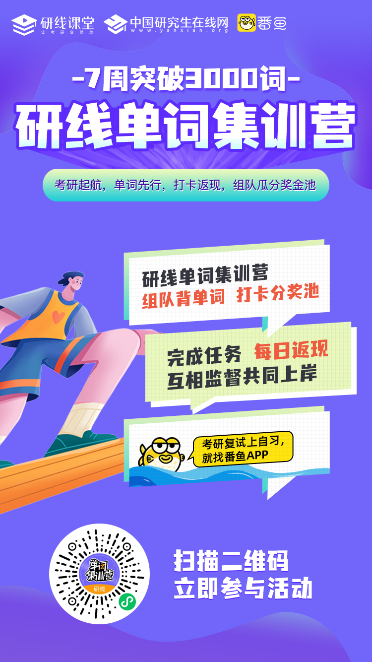 導讀:距離2022考研還剩287天,各位同學開始復習(預習)了嗎?2021考研即將結束,2022的同學準備好“@22考研er,49天挑戰英語3000詞,最高返現200%!”一起來挑戰英語!