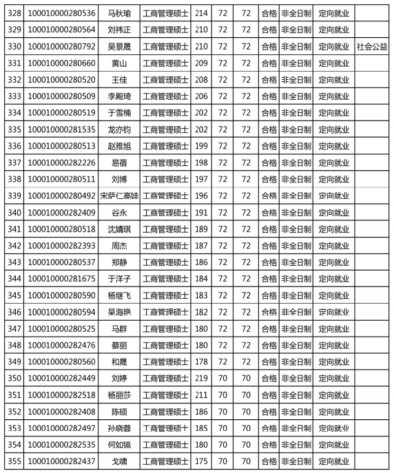 北京大學(xué)深圳研究生院工商管理碩士招生擬錄取名單公示
