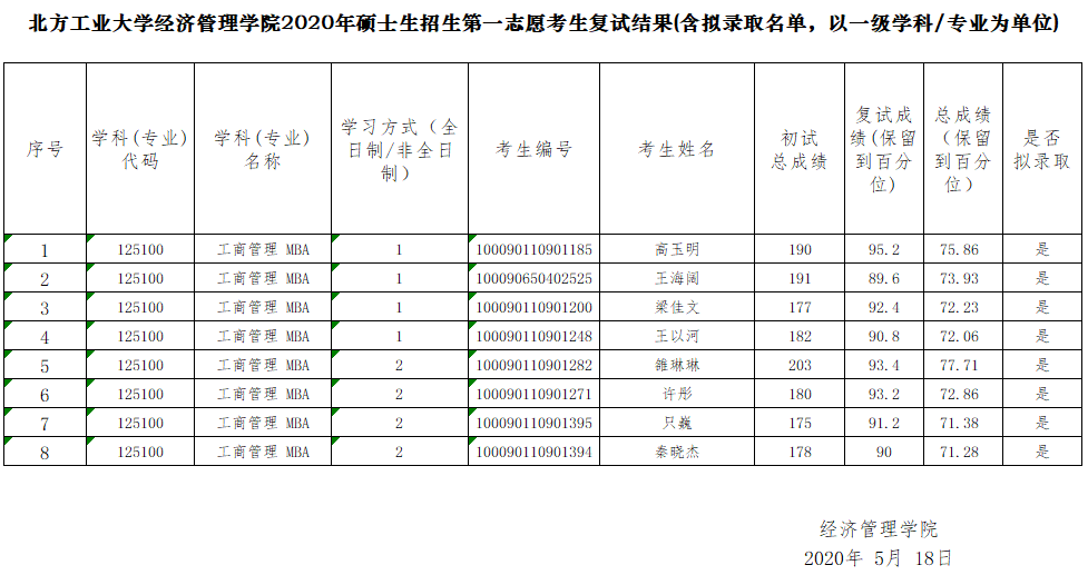 以上就是“2020MBA擬錄取名單:北方工業大學工商管理碩士招生擬錄取名單公示”的全部內容,更多錄取名單相關內容,盡在“錄取名單”欄目!