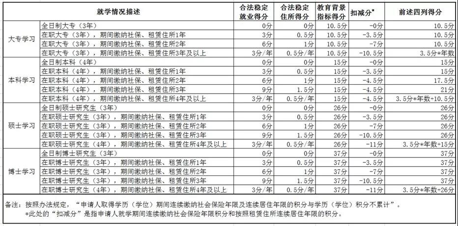 在職學(xué)習(xí)期間,扣除的連續(xù)繳納社保和連續(xù)居住年限分值不高于按學(xué)歷積分增加的分值,并統(tǒng)一按照租賃住所扣減連續(xù)居住年限積分。