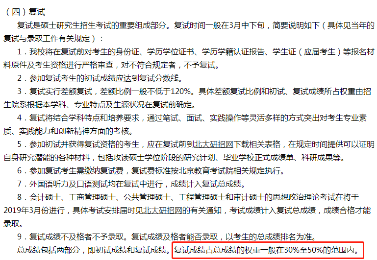 復試成績占總成績的權重一般在30%~50%,但也有少數院校專業復試比例超過50%。