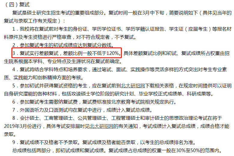 舉例:初試成績500分,復試成績500分,兩部分成績權重都為50%,所有考生按總分排名,擇優錄取。(復試總成績=專業課筆試成績×筆試權重+綜合面試成績×面試權重+外語聽說能力成績×外語成績權重)