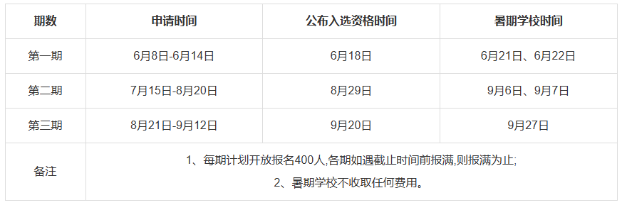 (3)暑期學校共開設三期,時間如下: