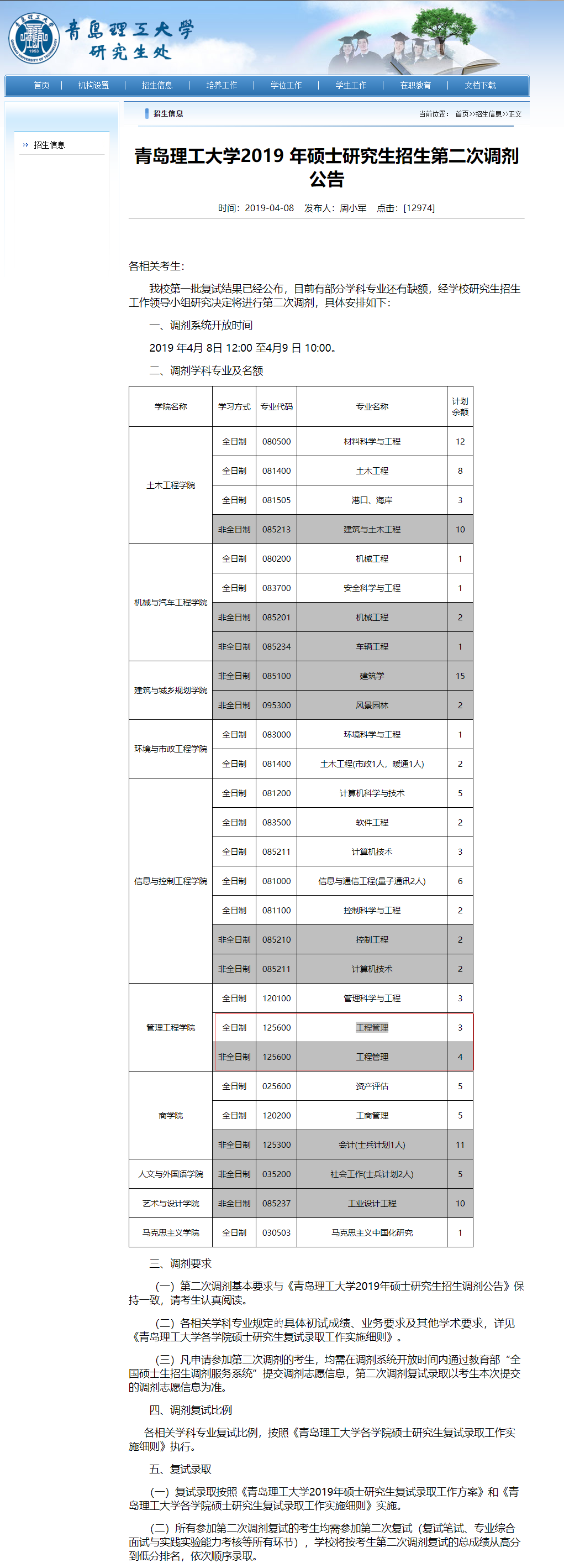 以上是小編整理的“MEM接受調劑的院校 | 青島理工大學2019年接收MEM調劑的通知”,更多關于MEM院校調劑信息,盡在調劑欄目,預祝大家考研成功!