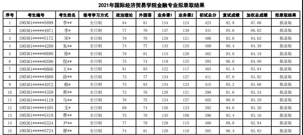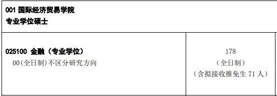 對外經(jīng)濟貿(mào)易大學2021年全日制金融專碩國際經(jīng)濟貿(mào)易學院擬錄取人數(shù)為127人,金融學院擬錄取人數(shù)為171人