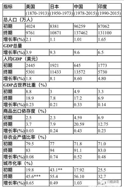 四國(美日中印)經(jīng)濟起飛主要指標比較(圖二)