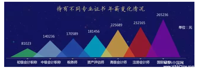 當然,證書本身僅僅是一個會計理論水平的證明,不過是一個很好的跳槽擇業敲門磚,最終薪酬高低是受多方面因素影響,比如個人能力、工作崗位、公司規模、所在城市的行業水平等等。