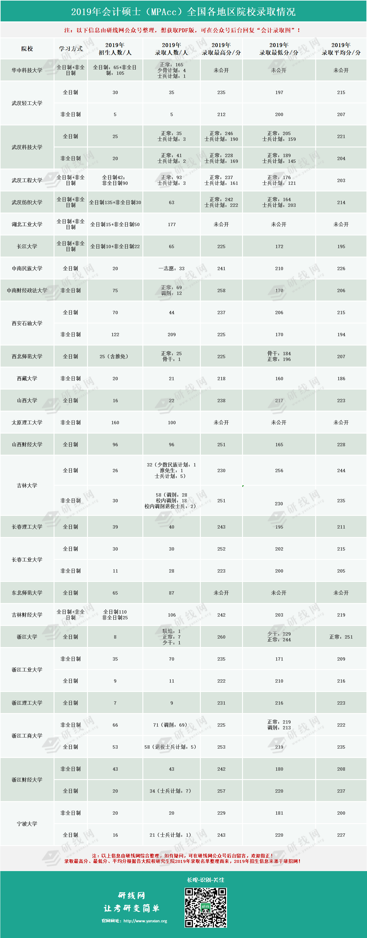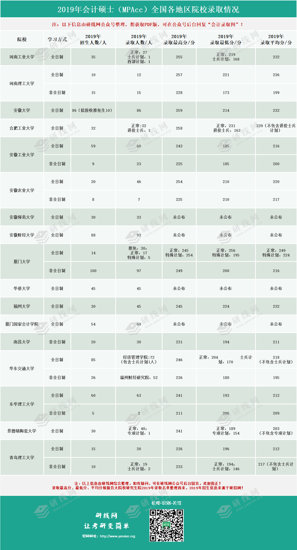 導讀:至今,小編收集了100多所院校會計專碩的錄取名單。通過錄取名單計算平均分、實際錄取人數,并篩選出最高分、最低分