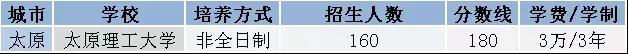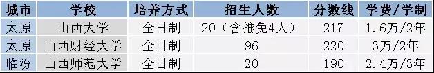 剩余的三所招生院校中,太原理工大學為唯一的211院校,但僅招收非全日制專業(yè)。山西師范大學是去年新增院校,整體實力一般。山西財經(jīng)大學屬于地方性的財經(jīng)類院校,招生人數(shù)100人左右,希望在山西發(fā)展的同學可以考慮。