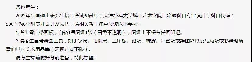 天津城建大學城市藝術學院發布了《關于2022年碩士研究生招生考試初試自命題科目專業設計(506)自帶繪圖工具的說明》。