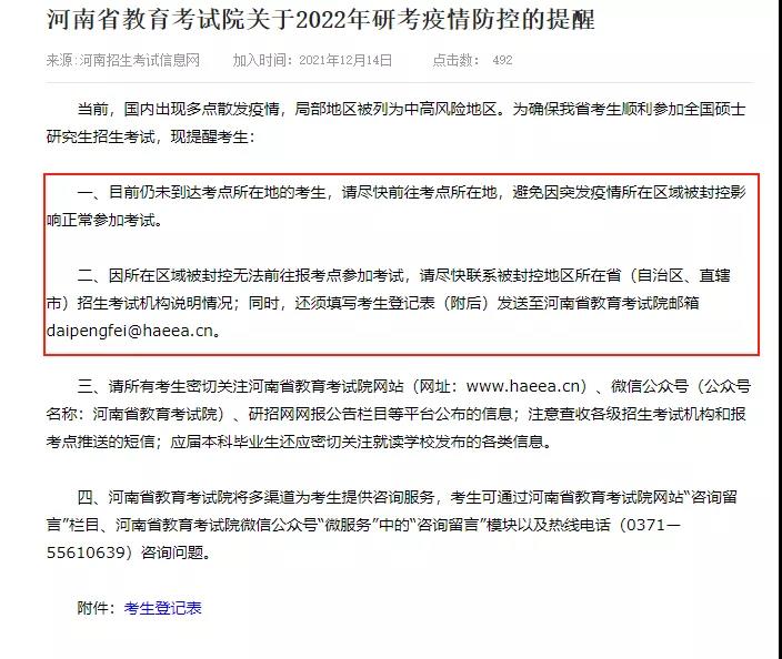 因所在區域被封控無法前往報考點參加考試,請盡快聯系被封控地區所在省(自治區、直轄市)招生考試機構說明情況。