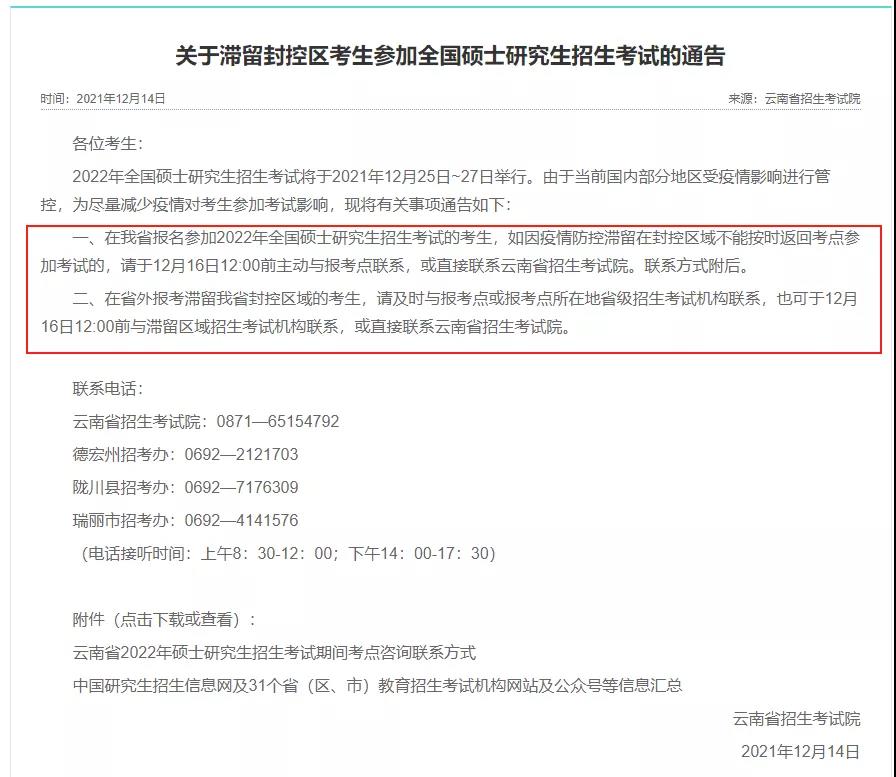 12月16日12:00前直接聯系云南省招生考試院