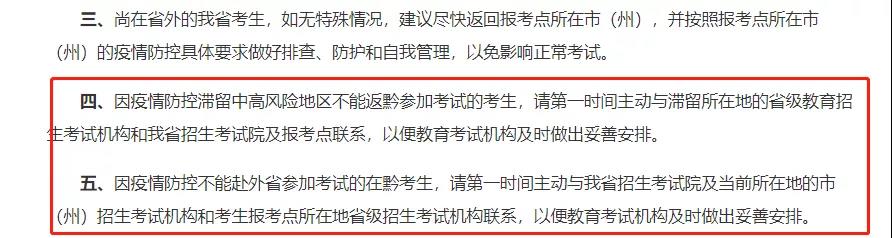 因疫情防控不能及時赴外/返回參加考試的,可以聯系考點安排
