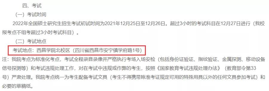 考試地點(diǎn):西昌學(xué)院北校區(qū)(四川省西昌市安寧鎮(zhèn)學(xué)府路1號(hào))