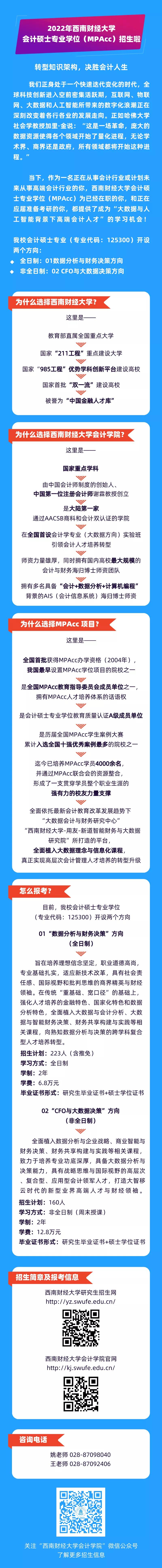 導讀:2022年西南財經大學會計碩士專業學位(MPAcc)招生啦!