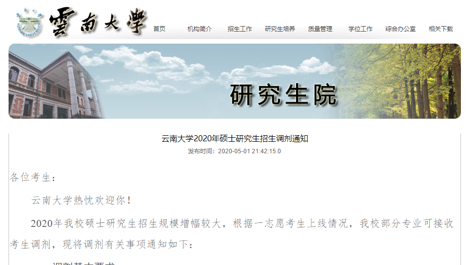 原文標題:云南大學2020年碩士研究生招生調劑通知