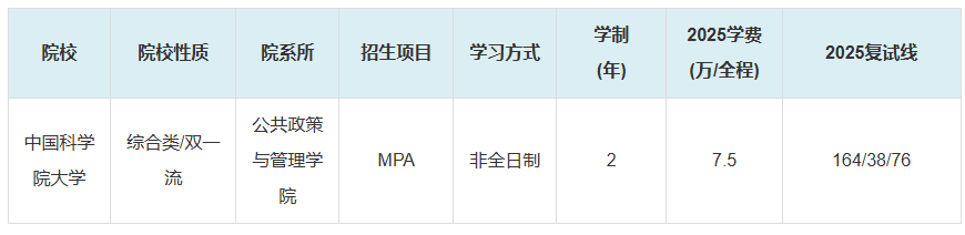 2025年中國科學院大學MPA復試分數線情況如下: